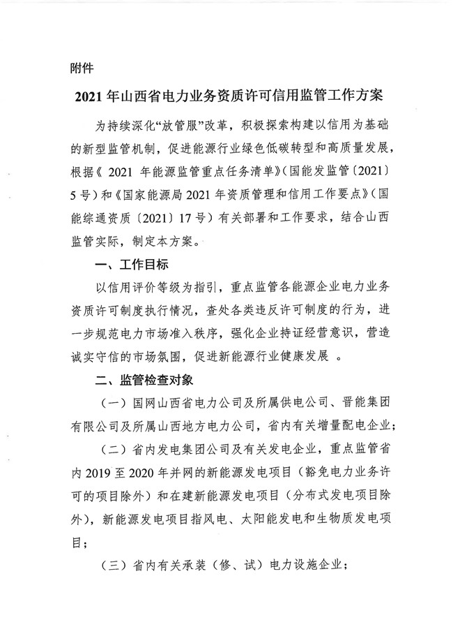 | 山西能源監(jiān)管辦印發(fā)《2021年山西省電力業(yè)務資質許可信用監(jiān)管工作方案》 |