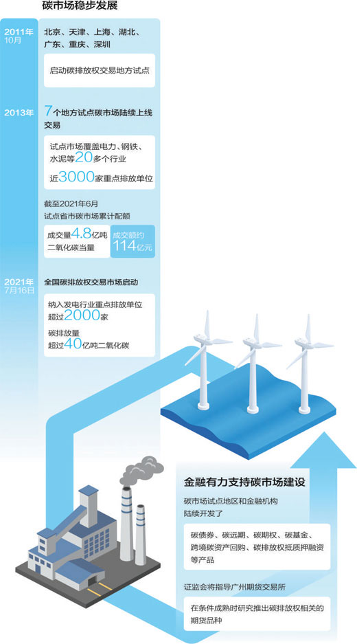 9點30分正式開市,10分鐘后,累計成交金額超過2000萬元。全天4個小時的交易,成交量410萬噸,收盤價單日漲幅6.7%。這是7月16日全國碳排放權交易市場啟動后的火熱交易景象。 建設全國碳排放權交易市場,是利用市場機制控制和減少溫室氣體排放、推動綠色低碳發(fā)展的一項重大制度創(chuàng)新,是實現碳達峰、碳中和的重要政策工具。從地方試點起步,到全國市場啟動,10年間,經驗不斷積累、制度逐步完善。碳市場是如何運行的?碳價格是怎樣形成的?金融業(yè)又將在其中發(fā)揮什么作用?記者采訪了相關企業(yè)、交易所和專家。 “無形之手”助減排 碳市場能以最低成本、最高效率實現碳減排,充分發(fā)揮價格發(fā)現作用 在全國碳市場啟動前,地方碳市場試點工作已開展了10年,推動了不少企業(yè)的綠色轉型。 “當時公司以每噸60元的價格購買了約25萬噸碳配額。”2014年的首次碳交易讓廣州恒運企業(yè)集團股份有限公司副總經理周水良記憶猶新。廣東是首批開展碳排放權交易試點的省份之一,作為重點電力生產企業(yè),廣州恒運于2014年被納入碳排放管理,當時由于碳配額不足,企業(yè)購買了約1500萬元碳配額履約。 隨著試點交易的深入進行,廣州恒運逐步認識到減排不只是壓力,碳資產管理、減碳技術應用也能帶來經濟效益。于是,公司成立了專門的節(jié)能減碳專班,升級改造發(fā)電機組,大力發(fā)展天然氣發(fā)電等低碳的清潔能源項目……一系列改造升級讓廣州恒運實現從花錢購買碳配額到出售碳資產獲利的轉變。2020年,企業(yè)通過出售碳資產獲利3000多萬元。 像廣州恒運一樣,不少控排企業(yè)嘗到了碳市場帶來的甜頭?!霸絹碓蕉嗥髽I(yè)意識到,只有主動減排,才能在綠色低碳轉型的大潮中占得有利先機?!睆V州碳排放權交易所總經理孟萌介紹,在試點過程中廣東碳市場較為活躍,截至今年6月,碳排放權累計成交金額超過40億元,居全國首位。 “更重要的是,碳市場切實推動產生了良好的減排效果,通過碳排放總量控制、指標分配和履約機制,廣東碳市場整體實現絕對量減排,2019年減排量達4374萬噸,減排幅度達11.4%?!泵厦日J為,不論是國外實踐還是國內試點都表明,碳市場是一個能夠以最低成本、最高效率實現減排的政策工具。 這一市場是如何運轉的?孟萌以廣東碳市場為例介紹碳市場的建設框架:首先設定碳市場覆蓋范圍,廣東確定覆蓋的行業(yè)是電力、水泥、鋼鐵、石化、造紙、民航六大行業(yè)中年排放二氧化碳2萬噸及以上的企業(yè);再設定配額總量,也就是降碳的目標任務;然后制定配額分配方案,采取基準線法,同行業(yè)的企業(yè)橫向比較,獎勵先進、懲戒落后,同時明確碳配額分配是否免費以及有償分配的比例。此外,還要建立碳排放報告核查體系和履約機制,監(jiān)管企業(yè)的碳排放量,明確未履約行為的懲罰規(guī)則,保證碳市場的約束力和公信力。 碳市場交易的產品是碳排放權。像廣州恒運那樣,獲得一定碳排放配額的控排企業(yè),超額排放需在碳市場上購買配額,成功減排則可出售富余配額。全國碳市場上線后,首批納入的2000多家電力行業(yè)重點排放單位可以在全國碳排放權交易系統(tǒng)中通過協(xié)議轉讓、單向競價或其他符合規(guī)定的方式交易。 碳市場如何發(fā)揮低成本、高效率的減排作用?在北京綠色交易所總經理梅德文看來,碳市場同其他市場一樣,通過價格信號來引導碳排放權資源的優(yōu)化配置,以“無形之手”推動降低全社會減排成本,促進綠色低碳產業(yè)投資。 “要充分發(fā)揮碳市場的價格發(fā)現作用,只有推動形成合理碳價,才能讓碳市場起到高效約束碳排放和激勵節(jié)碳的作用。”梅德文認為,碳價過低,企業(yè)沒有減排積極性;碳價過高則會導致一些高碳企業(yè)負擔過重,也不利于企業(yè)轉型發(fā)展。 從7個地方試點的運行情況看,近兩年加權平均碳價約在每噸40元左右。梅德文認為,雖然試點地區(qū)進行了有益探索,但由于市場規(guī)模有限,還未形成真實反映碳排放綜合社會成本的碳價。發(fā)現合理有效的碳價,是全國碳市場建設的重要目標任務。 豐富碳金融衍生品 碳排放權期貨市場建設將與現貨市場相互促進、共同發(fā)展 如何更好地通過碳市場形成碳價格,最大化發(fā)揮碳價格的激勵約束作用?專家認為,國際經驗表明,由于碳交易具有較強的金融屬性,應引入碳期貨等金融衍生品交易機制,以更好地發(fā)現價格和進行風險管理。 “只有多元的金融機構、金融產品加入進來,碳市場才能更為活躍,碳定價才能更有效率。”梅德文認為,多元化的市場主體風險偏好、預期、信息來源不同,這樣才能形成相對公允的價格,有助于形成有效的市場定價機制。 平安證券首席策略分析師魏偉也認為,沒有金融機構的參與,碳市場在價格發(fā)現、引導預期、風險管理等方面的作用將大打折扣。魏偉舉例說,歐盟的碳交易市場發(fā)展得相對比較成熟,很大程度上得益于在市場建立初期便發(fā)展出碳配額的期貨、期權、掉期等多種金融工具,且商業(yè)銀行、投資銀行、私募基金等各類參與主體眾多,極大提升了碳交易的活躍度。 日前,我國碳金融市場有好消息傳來。證監(jiān)會新聞發(fā)言人高莉近日表示,為配合碳現貨市場發(fā)展進程,證監(jiān)會積極指導廣州期貨