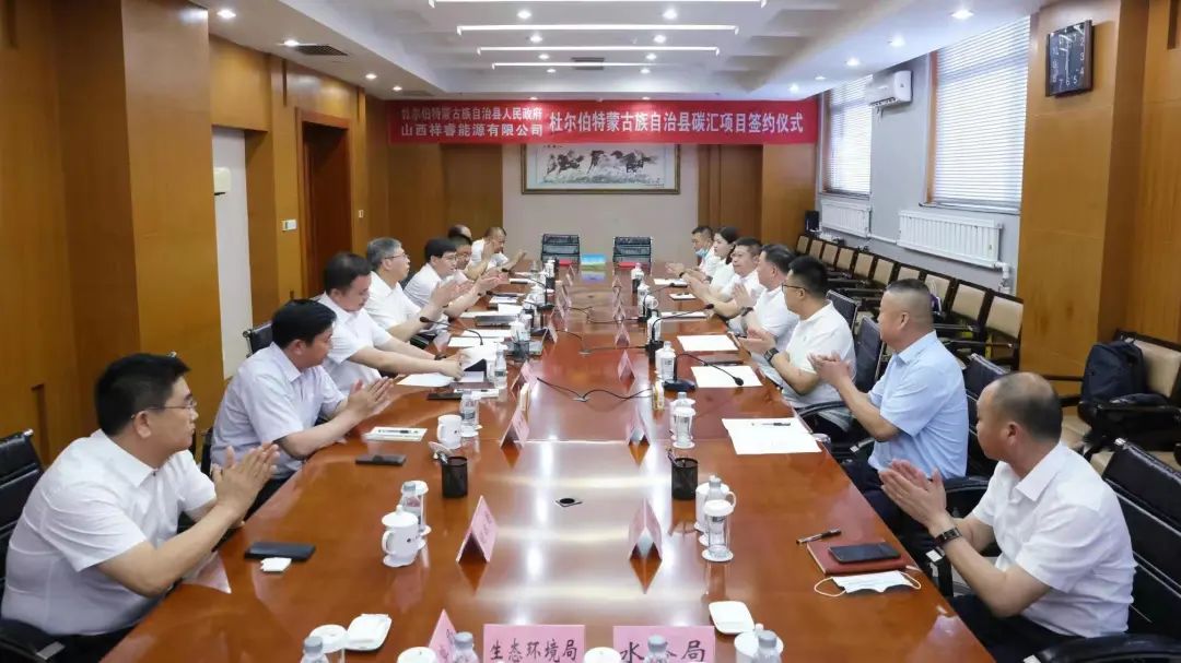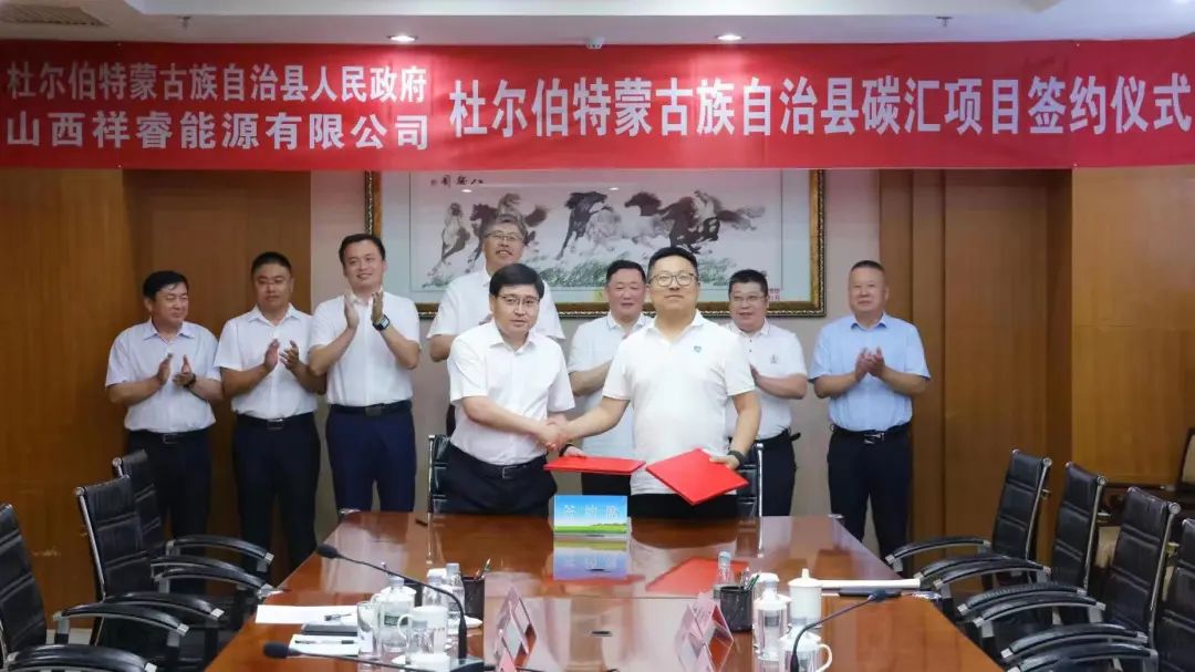 7月2日,黑龍江省大慶市杜爾伯特蒙古族自治縣人民政府與山西祥睿能源有限公司在杜蒙縣舉行了碳匯項(xiàng)目簽約儀式。杜爾伯特蒙古族自治縣委書記張劍,縣委副書記、縣長(zhǎng)朱學(xué)良,縣領(lǐng)導(dǎo)田偉、王東福、梁貴平,祥睿能源董事長(zhǎng)王正通、黑龍江祥睿能源總經(jīng)理?xiàng)钫疾ǔ鱿灱s儀式,山西藍(lán)頓旭美食品有限公司董事長(zhǎng)郝旭等參加簽約儀式。這次簽約標(biāo)志著祥睿能源碳匯項(xiàng)目落戶杜蒙縣,將為該縣生態(tài)高質(zhì)量發(fā)展提供碳減排數(shù)字科技運(yùn)營(yíng)與發(fā)展賦能。