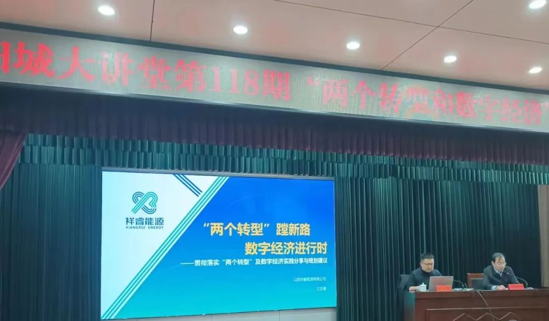 在專題講座上,王正通以習(xí)近平總書記在黨的二十大做的報(bào)告精神為指導(dǎo),緊緊圍繞省委書記林武在全省同步推進(jìn)“兩個(gè)轉(zhuǎn)型”大會上關(guān)于產(chǎn)業(yè)轉(zhuǎn)型和數(shù)字轉(zhuǎn)型的重要講話精神和全省數(shù)字經(jīng)濟(jì)布局,從數(shù)字經(jīng)濟(jì)的重要性、今后五年及未來國家數(shù)字經(jīng)濟(jì)發(fā)展、山西“兩個(gè)轉(zhuǎn)型”及數(shù)字經(jīng)濟(jì)發(fā)展、太忻數(shù)據(jù)流量谷數(shù)字經(jīng)濟(jì)建設(shè)經(jīng)驗(yàn)、祥睿能源“兩個(gè)轉(zhuǎn)型”及數(shù)字經(jīng)濟(jì)實(shí)踐等方面進(jìn)行了詳盡的解讀和分享,同時(shí)為陽城縣同步推進(jìn)“兩個(gè)轉(zhuǎn)型”和數(shù)字經(jīng)濟(jì)建設(shè)提出了建議。