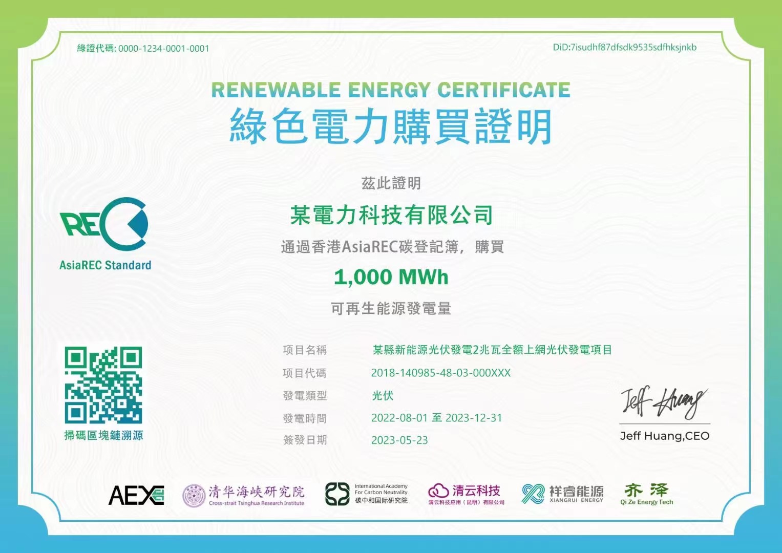 AsiaREC對標國際碳登記簿的標準和業(yè)務流程,由AsiaREC區(qū)塊鏈溯源系統(tǒng)發(fā)行,利用區(qū)塊鏈、AI、物聯(lián)網(wǎng)技術,致力于在香港構建AsiaREC定價基準促進內(nèi)地和境外的能源綠色屬易,達到國際能源綠色屬性互識標準,打造符合國際標準的綠色電力證書簽發(fā)認證追溯系統(tǒng),為中國制造業(yè)和出口型企業(yè)提供按照國際標準設立、被歐盟認可的碳減排證明系統(tǒng),助力企業(yè)應對歐盟碳關稅。