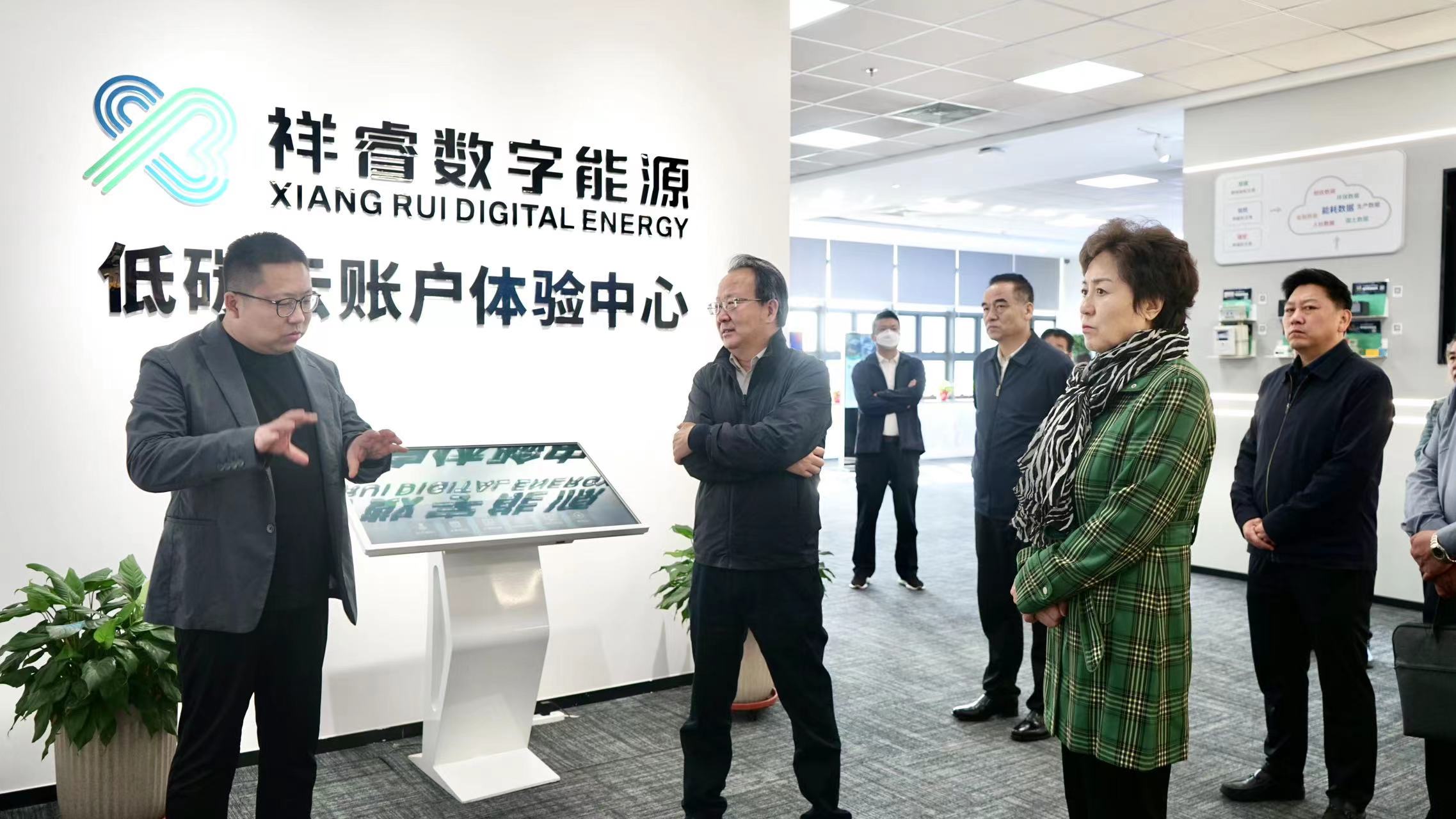 在祥睿能源,李曉波等領(lǐng)導(dǎo)參觀了祥睿數(shù)字能源展廳,深入了解祥睿能源發(fā)展歷程、核心業(yè)務(wù)、成果案例等情況。祥睿能源電碳交易中心總經(jīng)理王文彪、低碳云中心總經(jīng)理尉言分別結(jié)合“明銳云”電力交易、“低碳云賬戶”輔助平臺(tái)演示介紹了祥睿能源在電力交易、綠色低碳科技與運(yùn)營(yíng)實(shí)踐路徑。