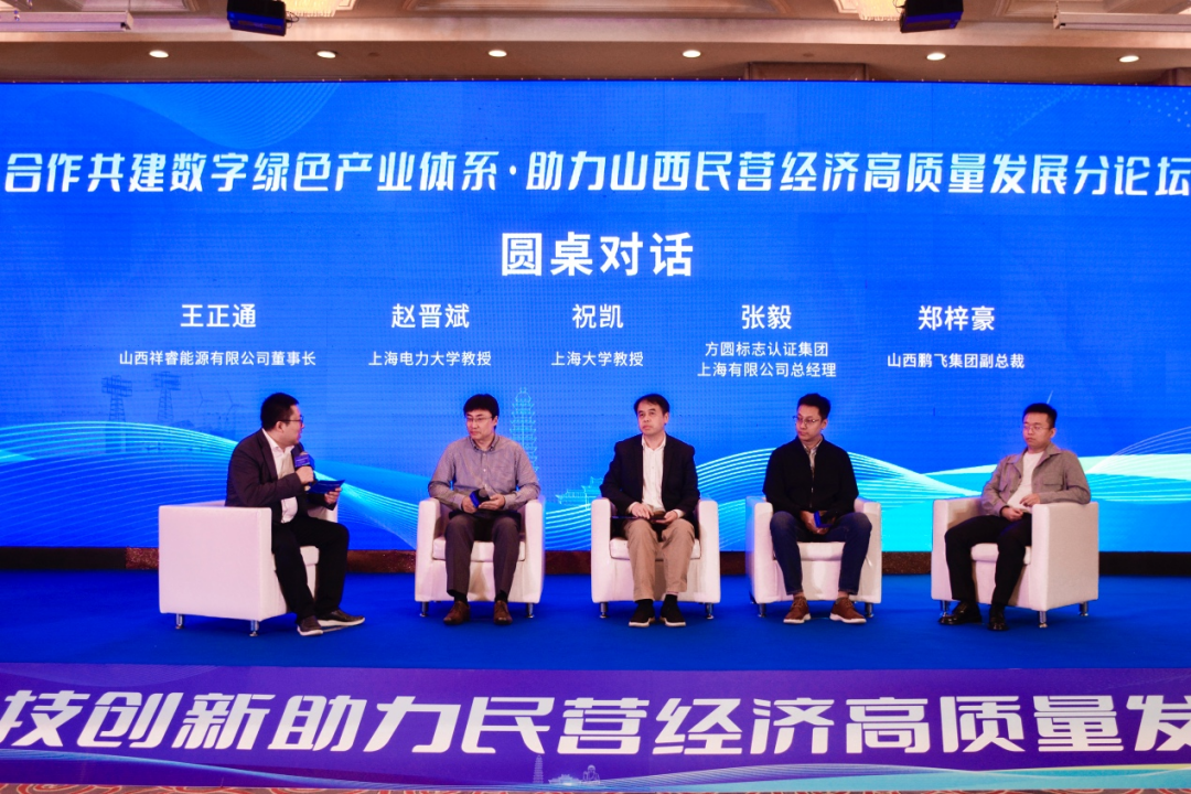 (從左到右:王正通、趙晉斌、祝凱、張毅、鄭梓豪) 在《合作共建數字綠色產業(yè)體系 助力山西民營經濟高質量發(fā)展》圓桌論壇上,王正通主持了圓桌對話。與會的專家學者和民營企業(yè)代表共同探討了山西在建設新型能源體系道路上的“破與立”,激發(fā)了創(chuàng)新思維,凝聚了思想共識,并共同描繪了山西能源轉型的新藍圖。 |