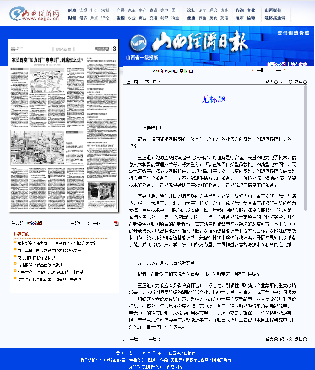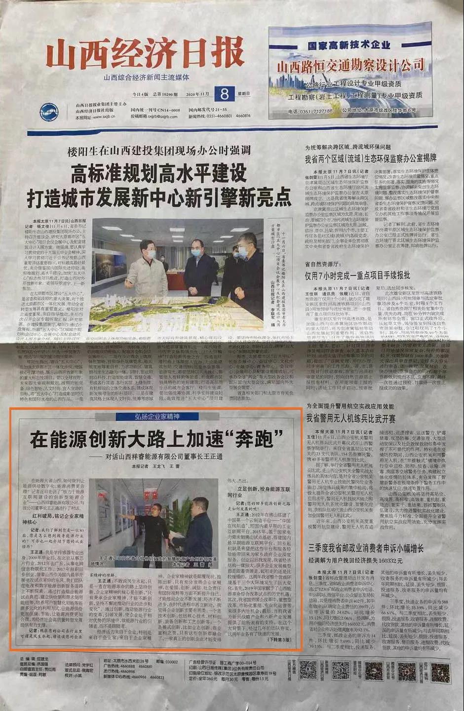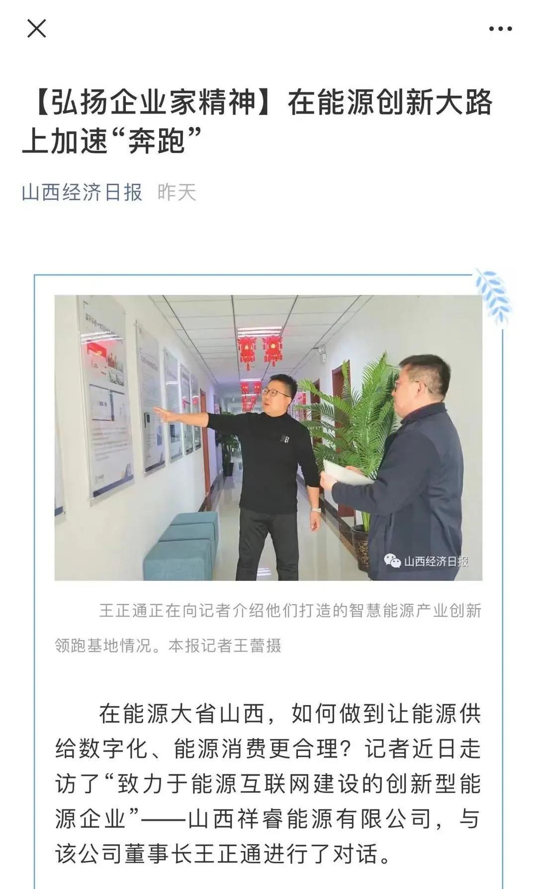 2020年11月8日《山西經(jīng)濟(jì)日?qǐng)?bào)》晉周刊專欄,就祥睿能源董事長(zhǎng)王正通與記者的對(duì)話進(jìn)行了專題報(bào)道,淺談如何弘揚(yáng)企業(yè)家精神。 企業(yè)家是企業(yè)的統(tǒng)帥和靈魂,也是改革創(chuàng)新的重要力量。習(xí)近平總書記指出:“我們?nèi)嫔罨母?,就要激發(fā)市場(chǎng)蘊(yùn)藏的活力。市場(chǎng)活力來自于人,特別是來自于企業(yè)家,來自于企業(yè)家精神?!弊鳛槠髽I(yè)家,要運(yùn)用創(chuàng)新意識(shí)和創(chuàng)新能力,能注意到別人忽略的問題,想到他人沒有想或不敢想的問題,抓住時(shí)機(jī),出奇制勝。無論是管理創(chuàng)新、產(chǎn)品創(chuàng)新、服務(wù)創(chuàng)新還是技術(shù)創(chuàng)新,本身就充滿著市場(chǎng)和技術(shù)的不確定性,需要企業(yè)家有膽識(shí)、有魄力,敢于擔(dān)當(dāng)。面對(duì)經(jīng)濟(jì)發(fā)展新常態(tài),更需要發(fā)揚(yáng)企業(yè)家精神,以更大的決心、更大的勇氣參與市場(chǎng)競(jìng)爭(zhēng),引領(lǐng)企業(yè)激發(fā)創(chuàng)新改革活力。
