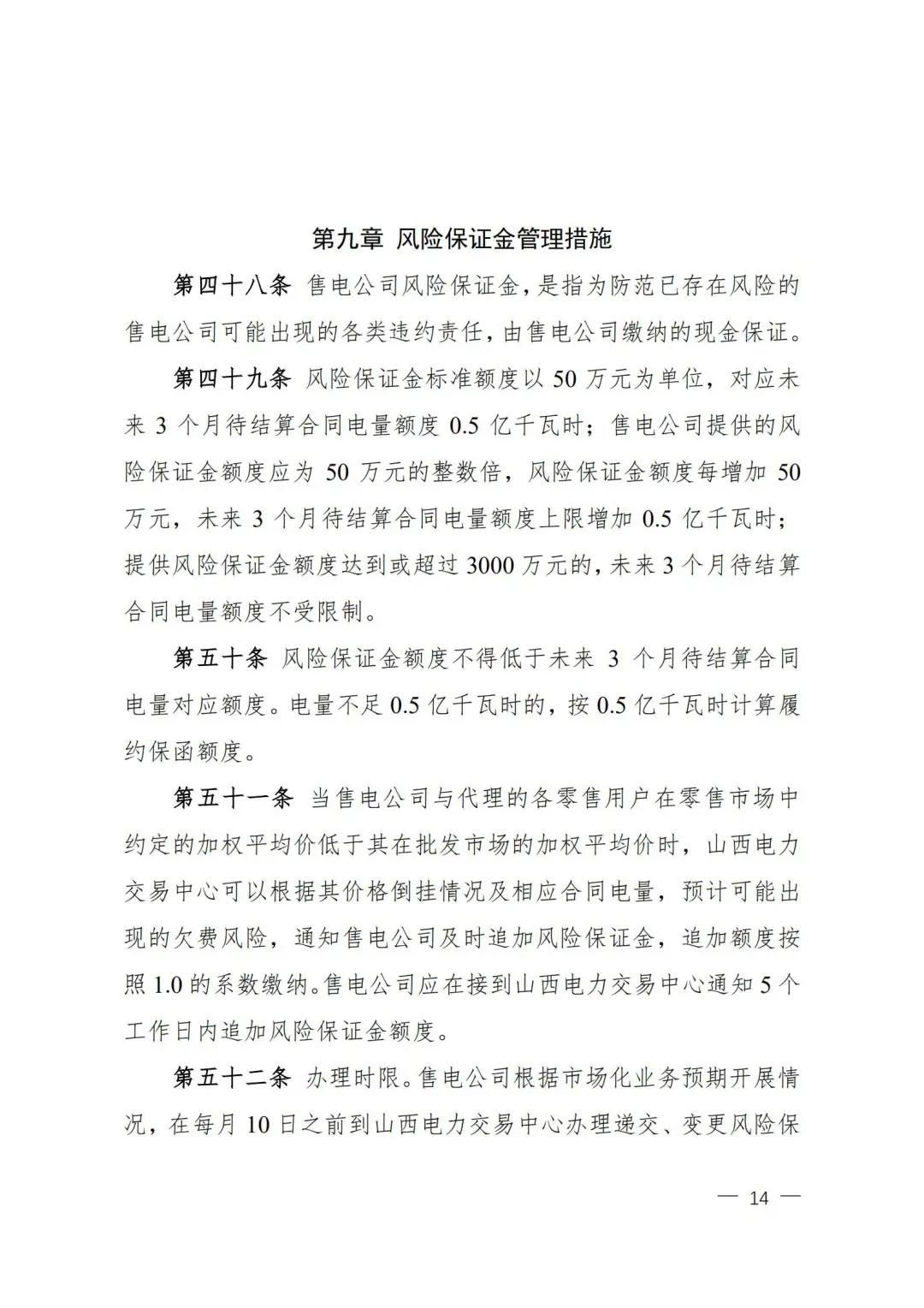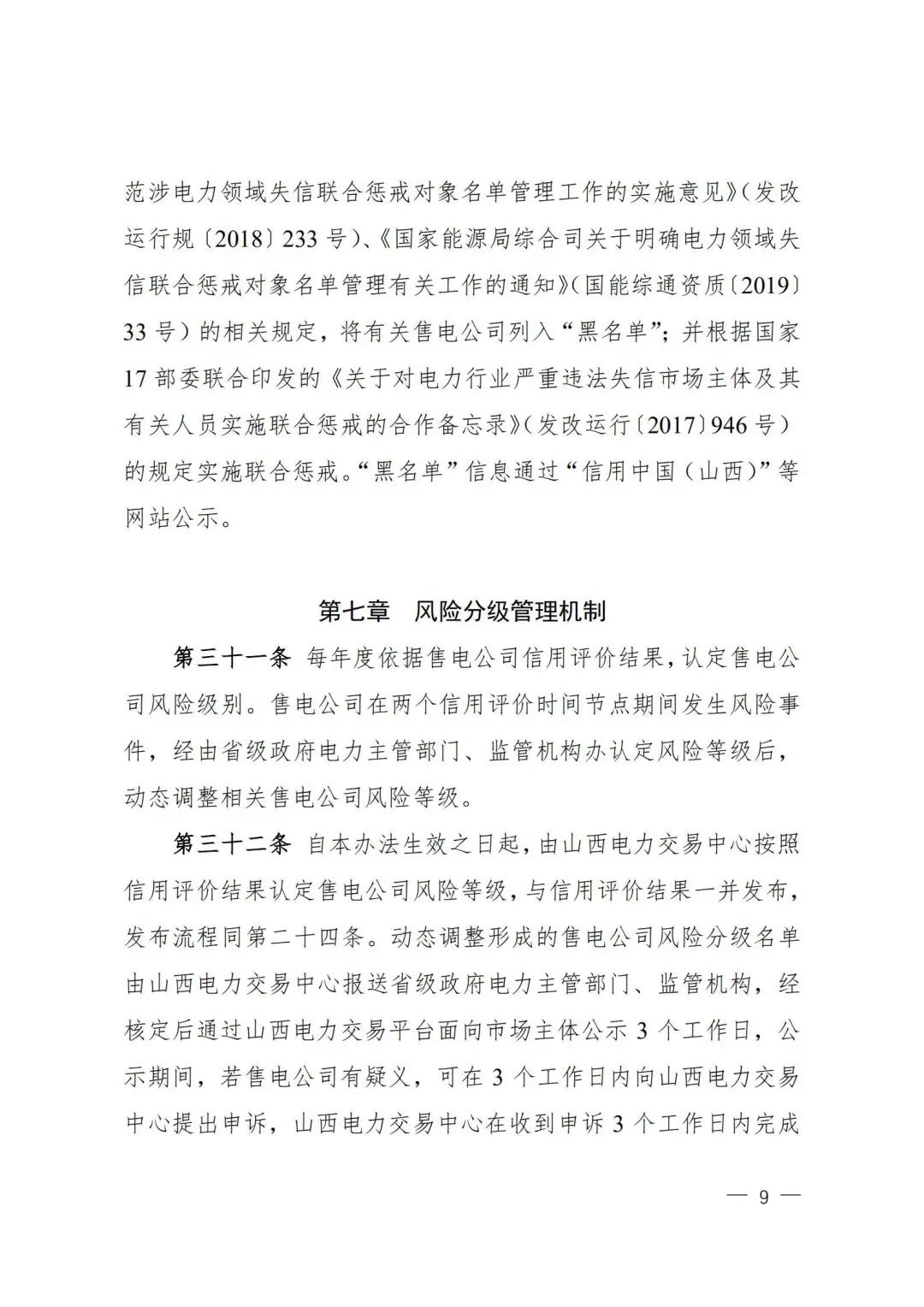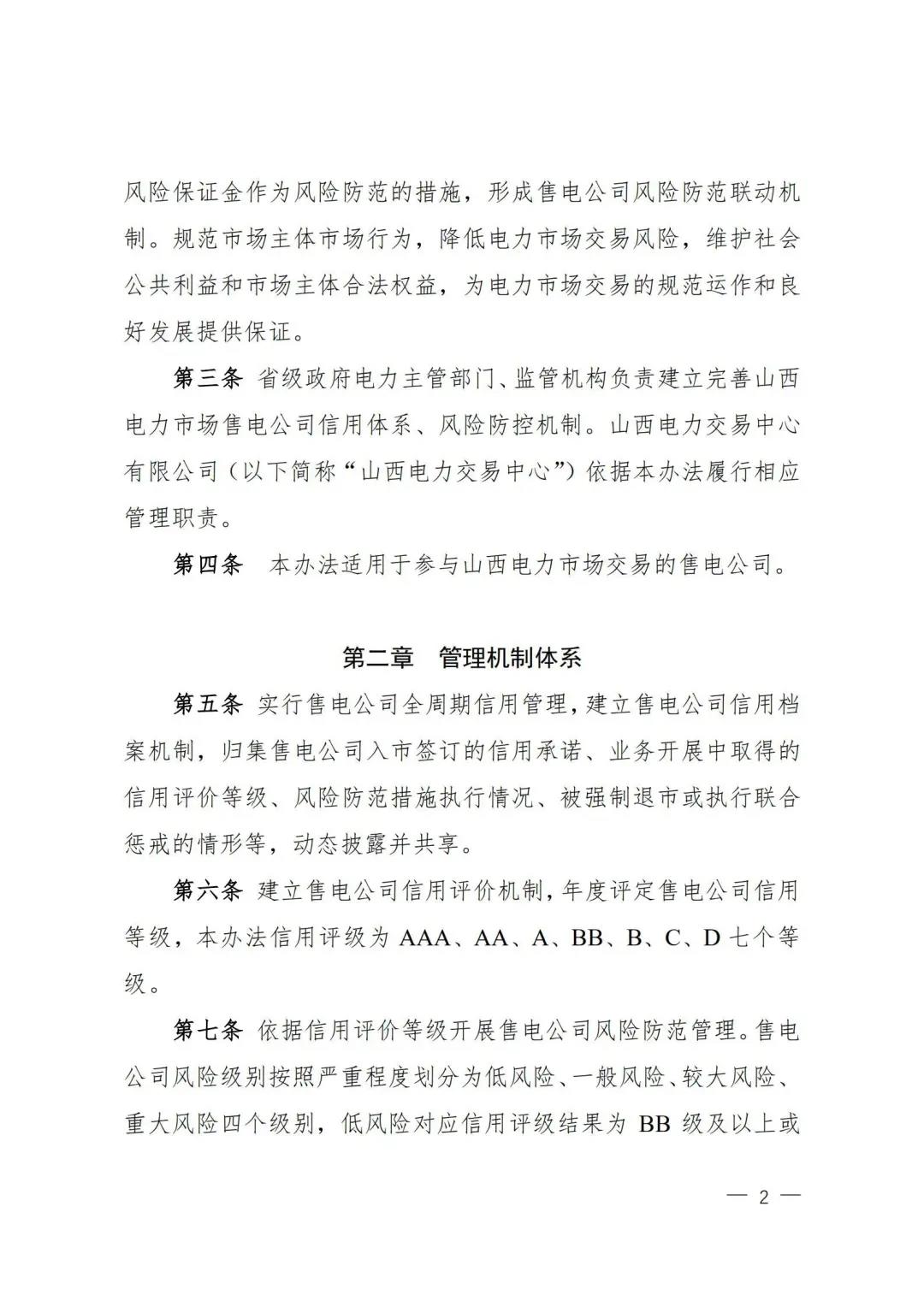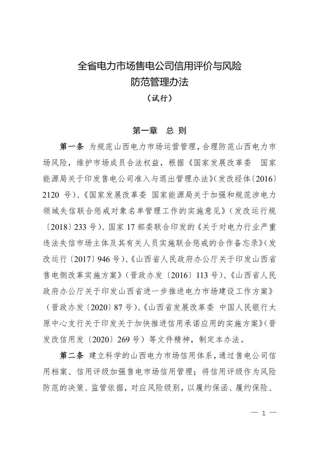 | 山西電力市場售電公司信用評價(jià)與風(fēng)險(xiǎn)防范管理辦法:依據(jù)風(fēng)險(xiǎn)級別執(zhí)行履約保函、保險(xiǎn)或風(fēng)險(xiǎn)保證金措施 |