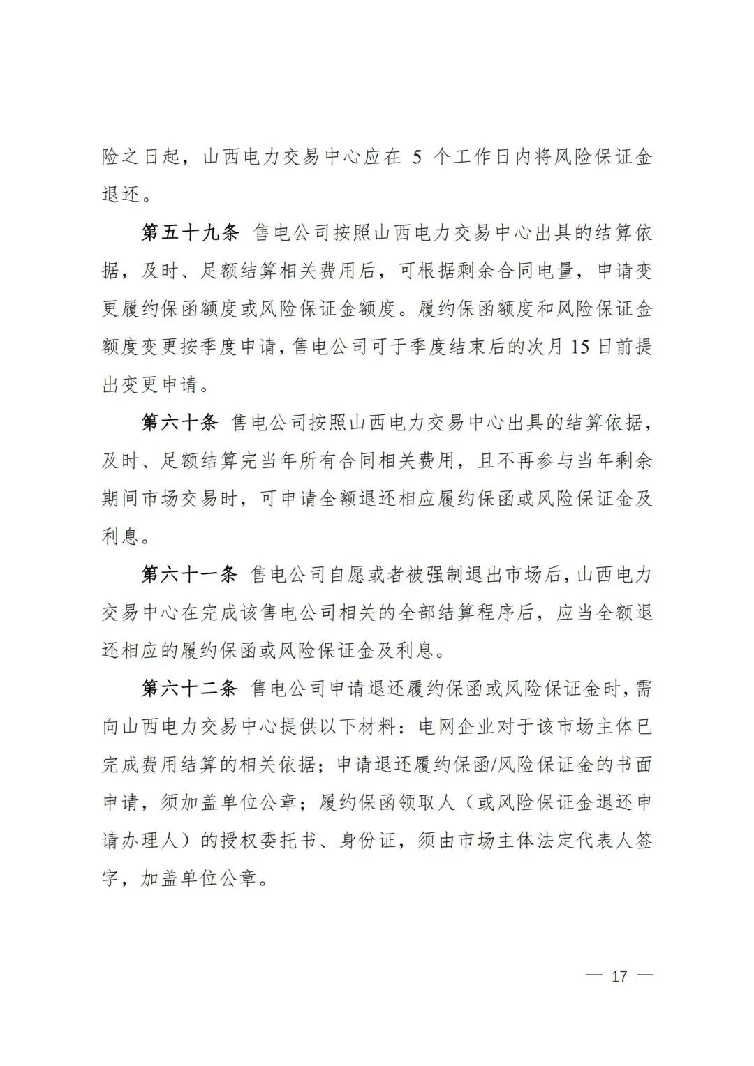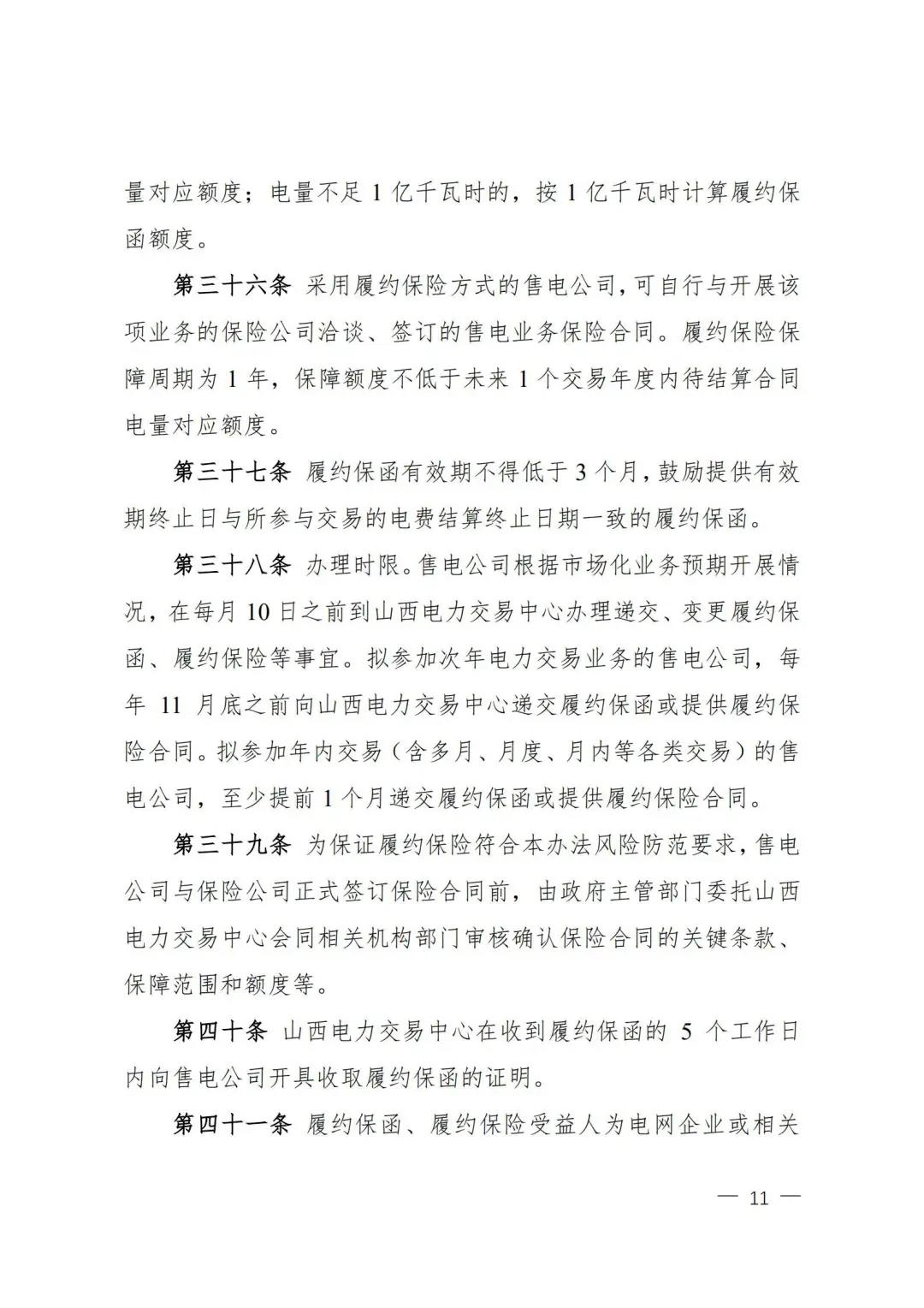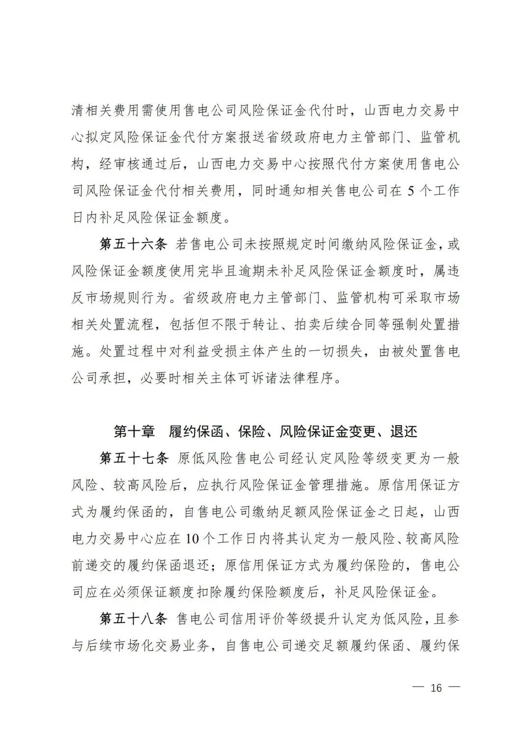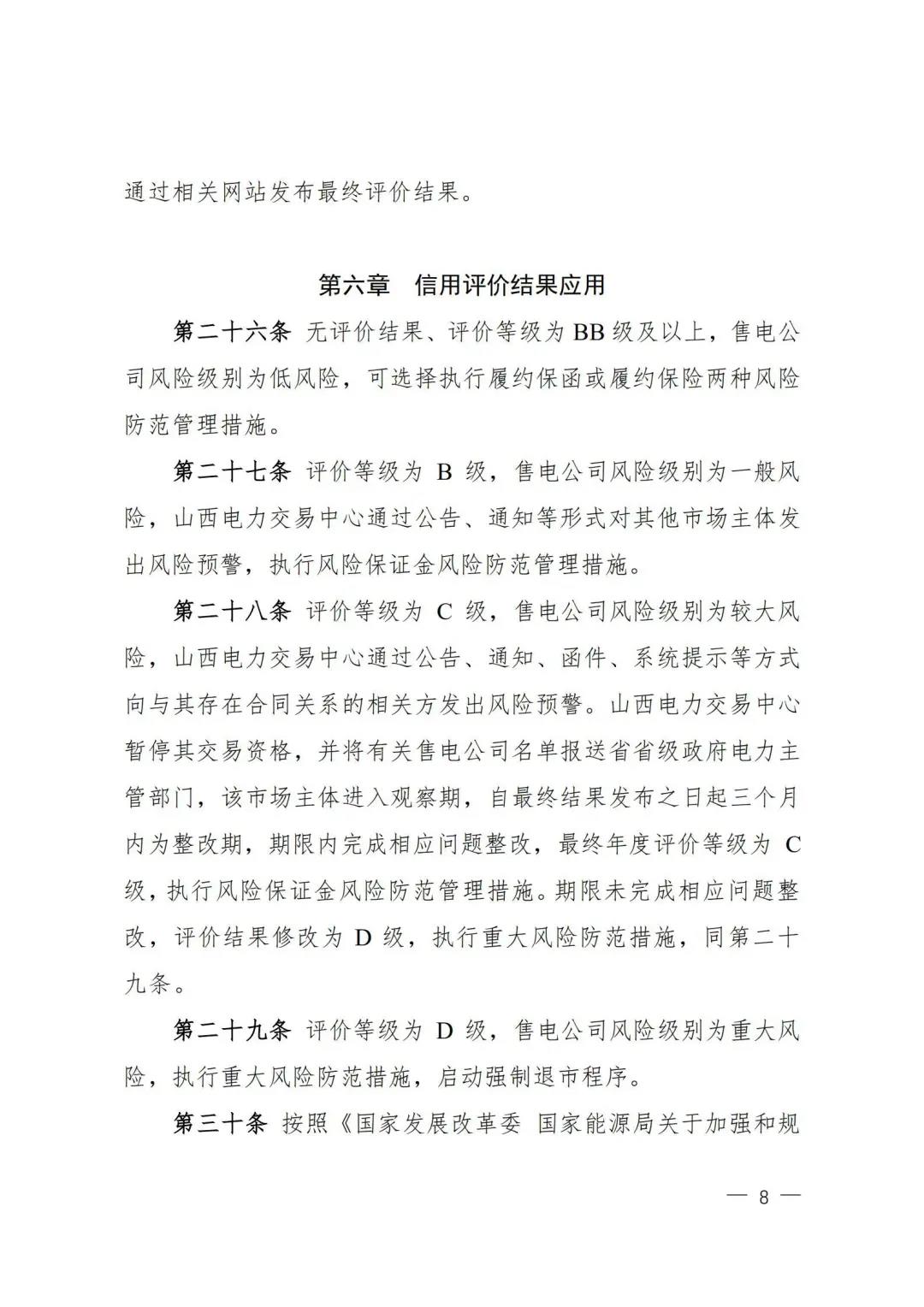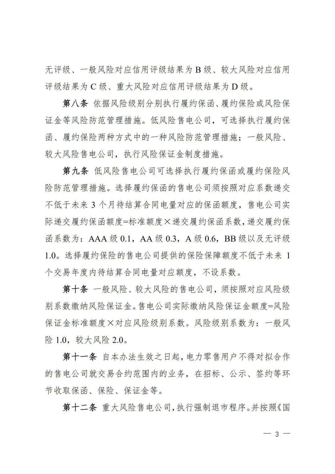 | 山西電力市場售電公司信用評價(jià)與風(fēng)險(xiǎn)防范管理辦法:依據(jù)風(fēng)險(xiǎn)級別執(zhí)行履約保函、保險(xiǎn)或風(fēng)險(xiǎn)保證金措施 |