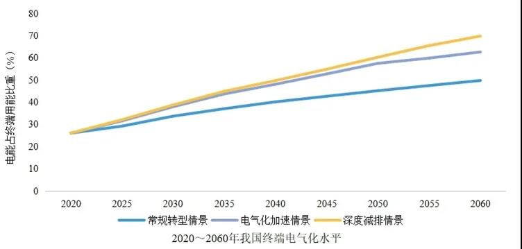 今年9月22日,習(xí)近平主席在第七十五屆聯(lián)合國(guó)大會(huì)一般性辯論上發(fā)表重要講話,表示我國(guó)二氧化碳排放力爭(zhēng)于2030年前達(dá)到峰值,努力爭(zhēng)取2060年前實(shí)現(xiàn)碳中和。這為我國(guó)應(yīng)對(duì)氣候變化、加快能源轉(zhuǎn)型提供了方向指引,也為構(gòu)建面向未來(lái)的能源互聯(lián)網(wǎng)提供了新契機(jī)。 國(guó)網(wǎng)能源院在會(huì)上發(fā)布的《中國(guó)能源電力發(fā)展展望2020》顯示,近期,電力系統(tǒng)通過(guò)電能替代方式承擔(dān)更大的碳減排責(zé)任。隨著2030年后清潔能源快速發(fā)展并成為發(fā)電能源主體,煤電應(yīng)用碳捕獲、利用與封存技術(shù)(CCUS),電力系統(tǒng)碳排放量快速下降,2060年電力有望實(shí)現(xiàn)近零排放。屆時(shí),電能占終端能源消費(fèi)比重、非化石能源占一次能源消費(fèi)比重分別有望達(dá)到70%、80%,電力將在能源深度碳減排中發(fā)揮關(guān)鍵作用。