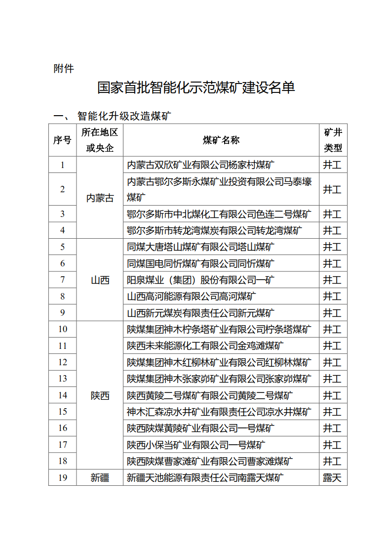 | 能源局《關(guān)于開展首批智能化示范煤礦建設(shè)的通知》(內(nèi)附國家首批智能化示范煤礦建設(shè)名單) |