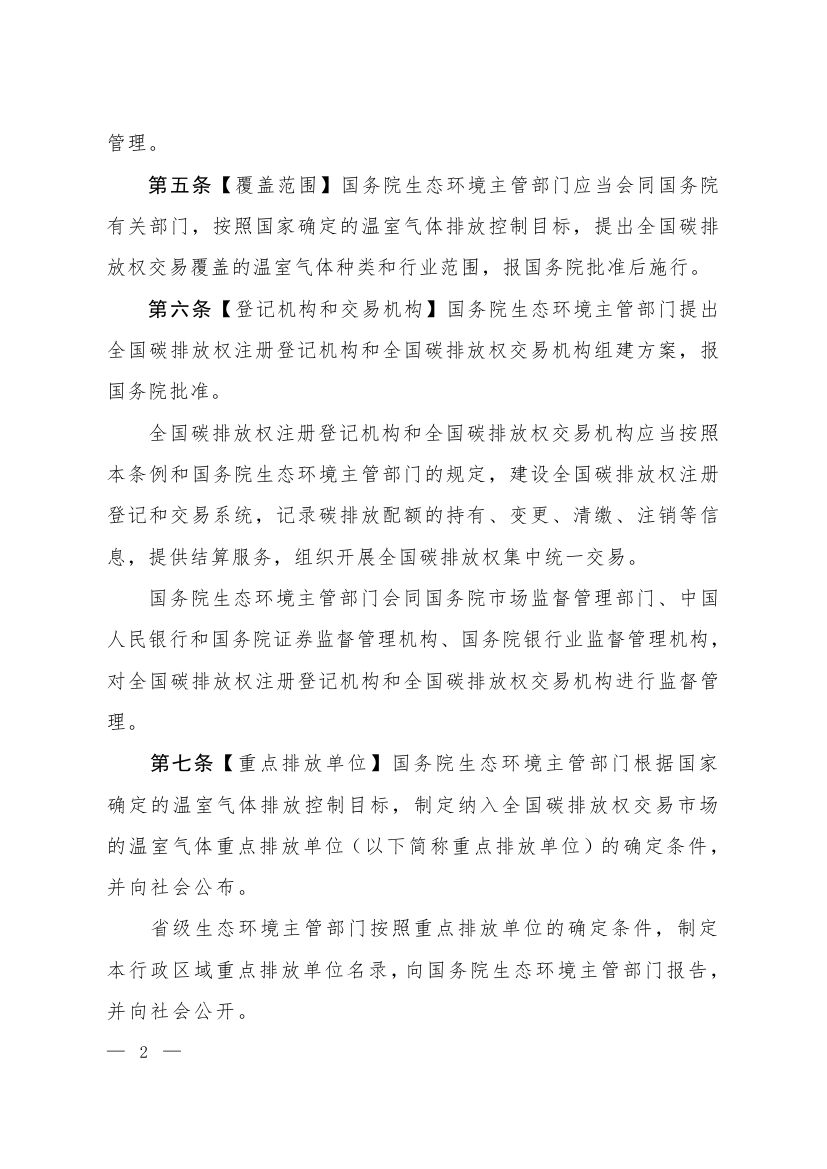 中華人民共和國生態(tài)環(huán)境部今日正式發(fā)布關(guān)于公開征求《碳排放權(quán)交易管理暫行條例(草案修改稿)》意見的通知,《草案修改稿》稱,該暫行條例施行后,不再建設(shè)地方碳排放權(quán)交易市場。暫行條例施行前已經(jīng)存在的地方碳排放權(quán)交易市場,應(yīng)當逐步納入全國碳排放權(quán)交易市場。具體步驟和辦法由國務(wù)院生態(tài)環(huán)境主管部門制定。原文如下: