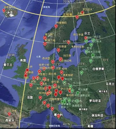南至北緯40度的西班牙馬德里,北至北極圈,共計(jì)24國(guó)。